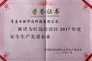 青島日聯(lián)華波科技有限公司獲得青島市紅島經(jīng)濟區(qū)二〇一五年度安全生產(chǎn)先進企業(yè)稱號;